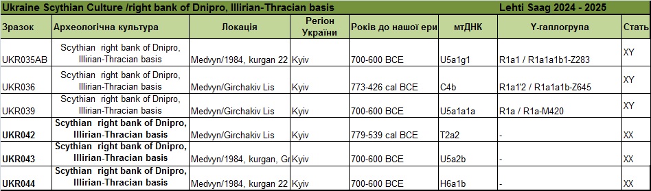 Гаплогрупи скіфів з правого берега Дніпра (Скіфія. Україна)